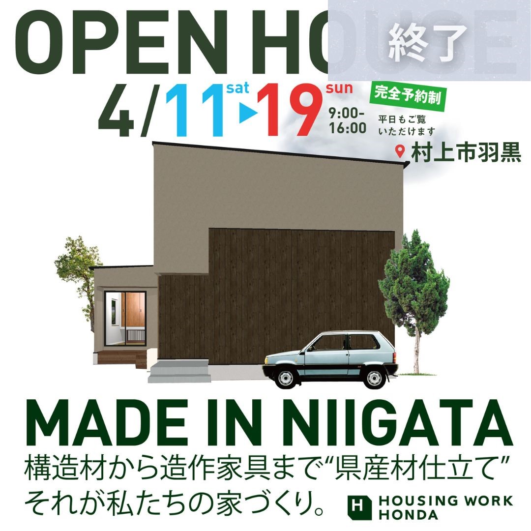 「MADE IN NIIGATA」 "新潟の木で造る家"にこだわった、 自社工場直結のホームビルダーです。