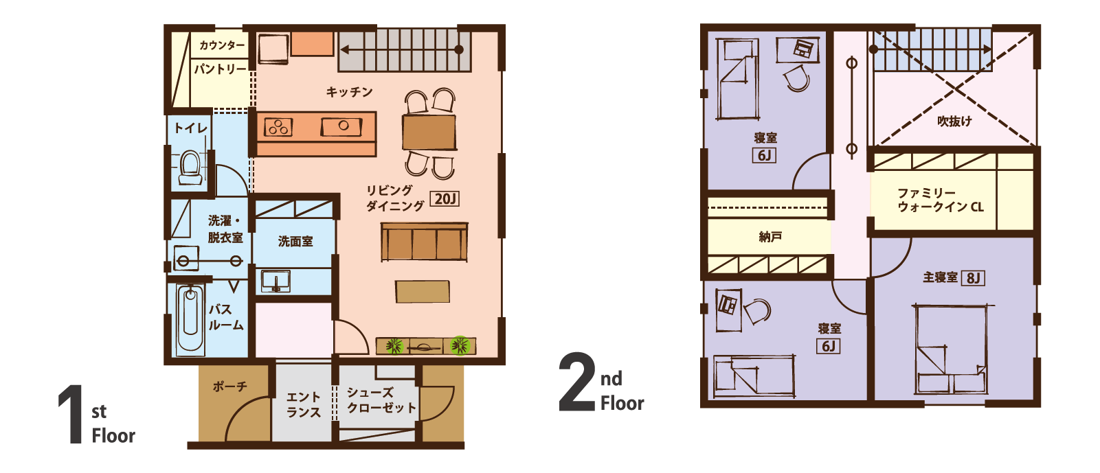 コンパクトながらもBBHらしい収納力や家事ラクにこだわった間取りに仕上がっています。特にセミオーダーでカスタマイズできる間取りに仕上げていますので、思い想いのオリジナル住宅に仕上げてください。
