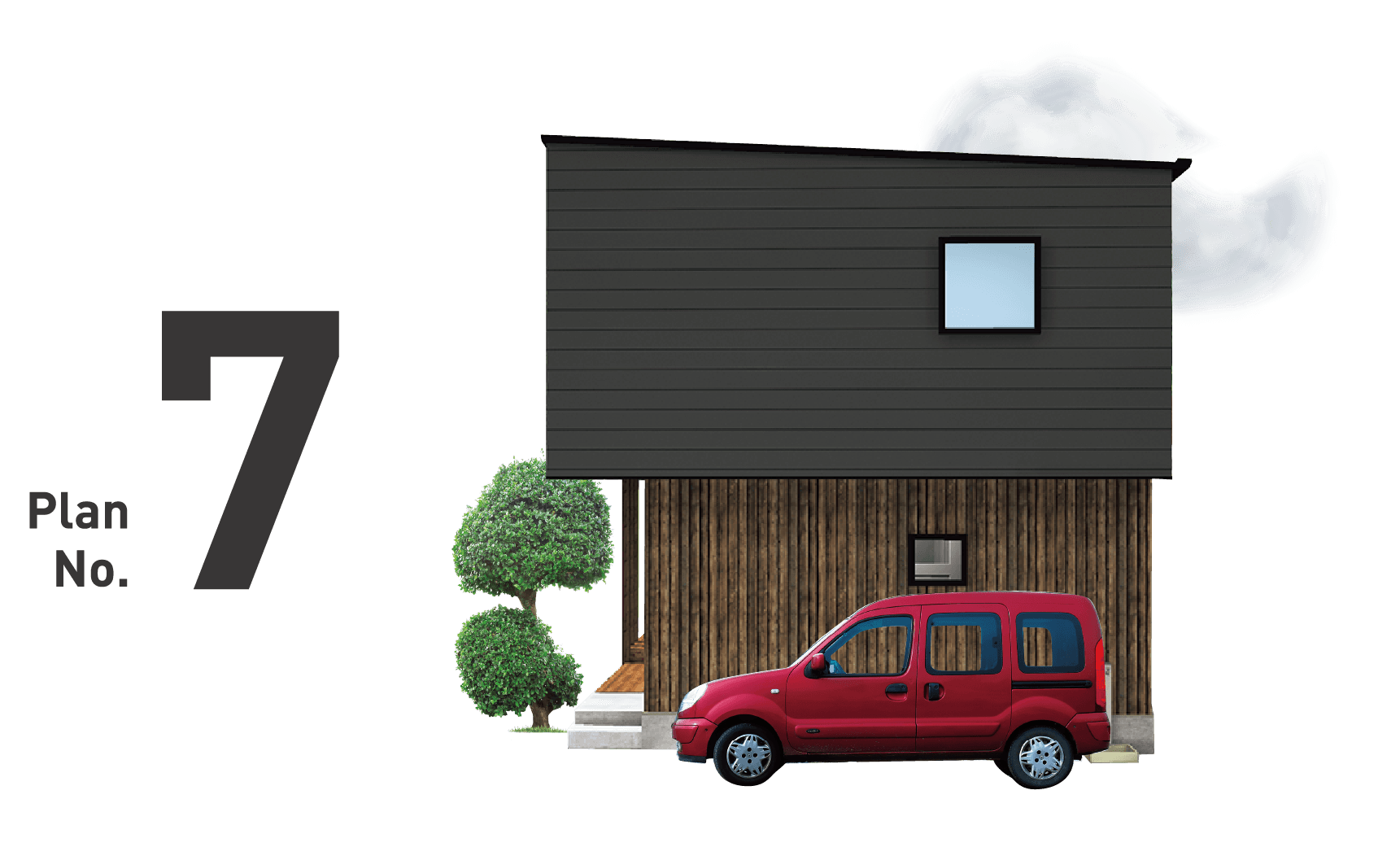 BBH最小モデルNo.7。通称「BBH Mini」が誕生しました。狭小地にも対応でき、ディテールはBBHらしい風格です。もちろんバックヤード収納も完備。BBHらしさを感じるこだわりの間取りに仕上がっています。