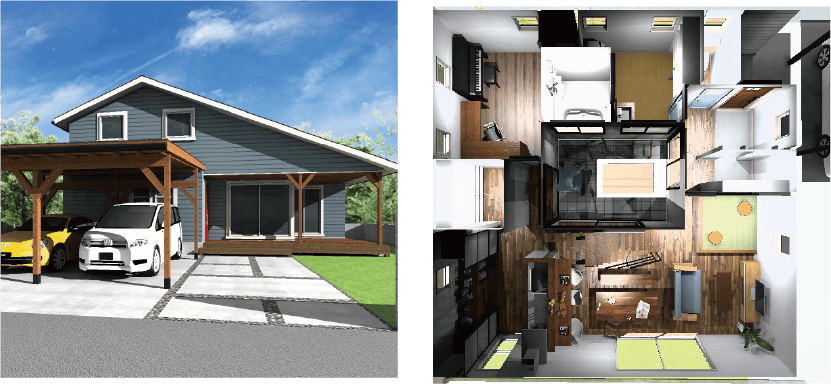 外観、間取り共にフルオーダーだからこそわかりやすくご提案。最新のCAD パース図面を3D 画像にてご提案いたします。