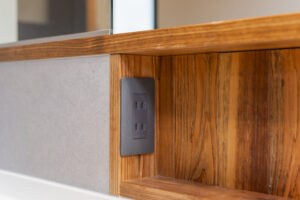HWHオリジナルのスパイスニッチは標準設備。キッチンがすっきり収納可。嬉しいコンセント付。