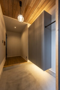 靴の多いご家庭でも、このシューズクロークなら生活感が出ず、すっきりした玄関に。