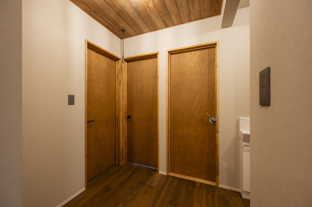 温かい木の空間に防音機能をプラスし、2階のお部屋は個人が心置きなく楽しめるプライベートゾーンにしました。 -