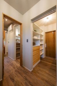 洗面室→脱衣室→お風呂→洗濯室→キッチンと家事導線もバッチリ。