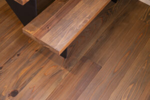 県産材サンポクシダーの自然な木目を活かした階段は、長く住まう程に深みのある色合いへと変化していきます。