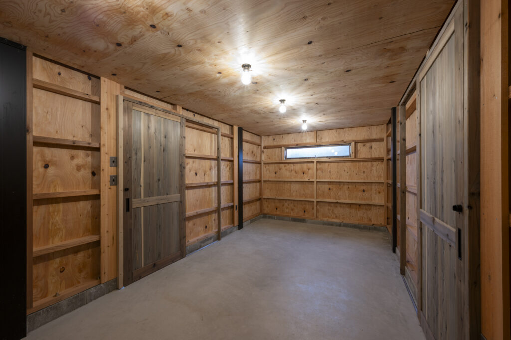ガレージに隣接した、広々木製小屋もHWHオリジナル。季節ごとの道具の入れ替えや、DIY、趣味の作業など ”こう使いたい” が叶う空間を造り上げました。