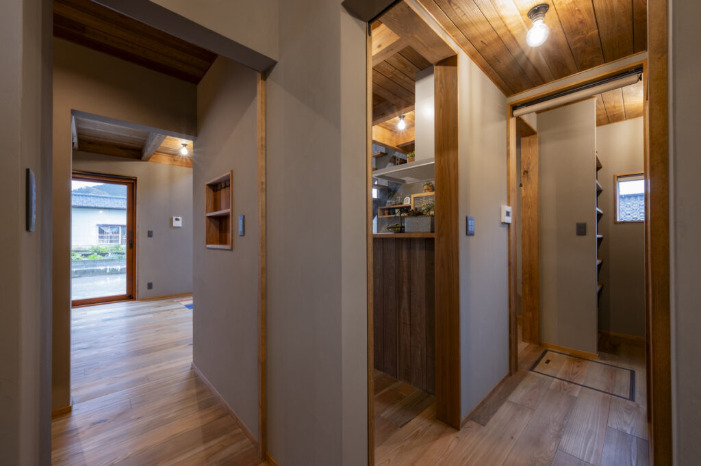 塗り壁と木質の統一感がクール