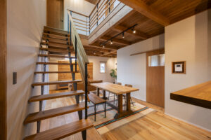 木質感豊かなリビング。自然素材ならではのやさしさとあたたかみが落ち着く空間を造りだします。
